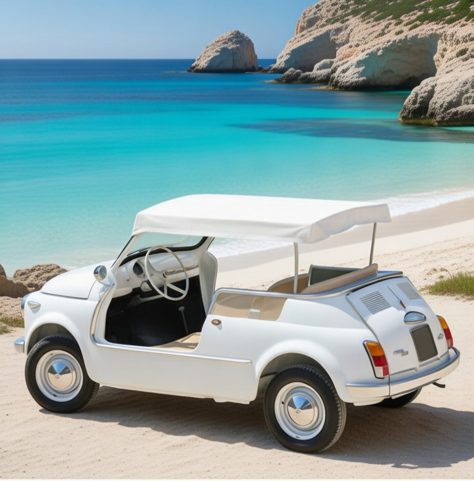 Coerentemente con il logo Vernagallo, la 500 Jolly Pebble Beach comunica fiducia e impegno verso la qualità. Non è solo un’auto, ma un simbolo di uno stile di vita che celebra l’estetica e il design, posizionandosi come un’icona versatile adatta sia al tempo libero che a contesti promozionali di prestigio (eventi, hotel di lusso, yacht club).