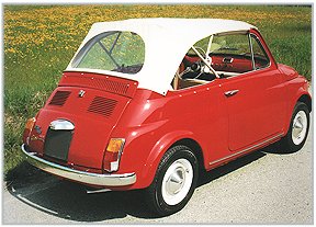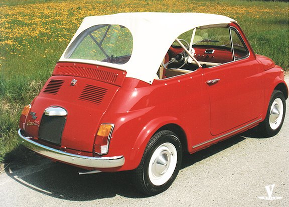 La capote della della Fiat 500 Cabriolet Holiday è la classica capote con movimentazione semplice e manuale. La giusta posizione in modalità “tetto coperto” viene mantenuta da appositi archetti, mentre il fissaggio alla scocca viene mediante bottoni in acciaio con chiusura a scatto. Un copricapote, abbinato ai colori dei singoli modelli realizzati, completa lo speciale allestimento.